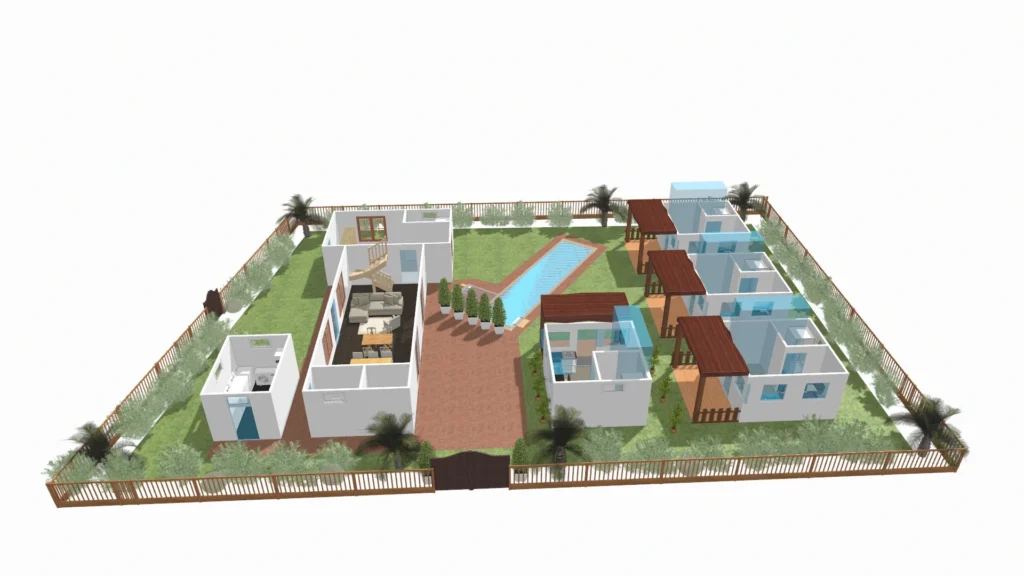 - Para construcciones desde cero, el modelo en 3D reflejará la distribución ideal basada en los datos recolectados, asegurando un diseño armonioso desde el inicio.